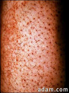 Some of the signs of scurvy are bleeding gums and the hairs on the patients’ arms turning curly or corkscrews.